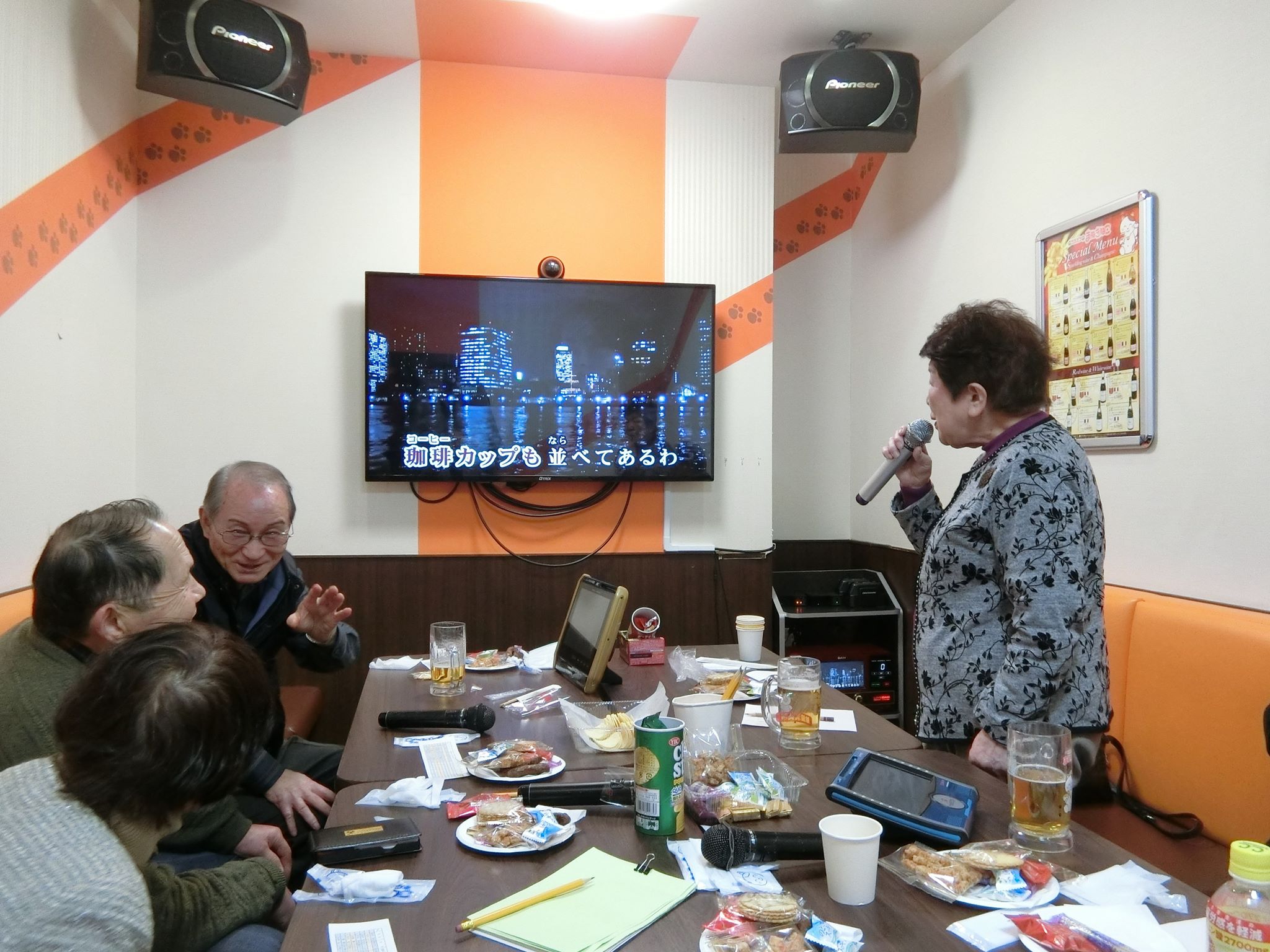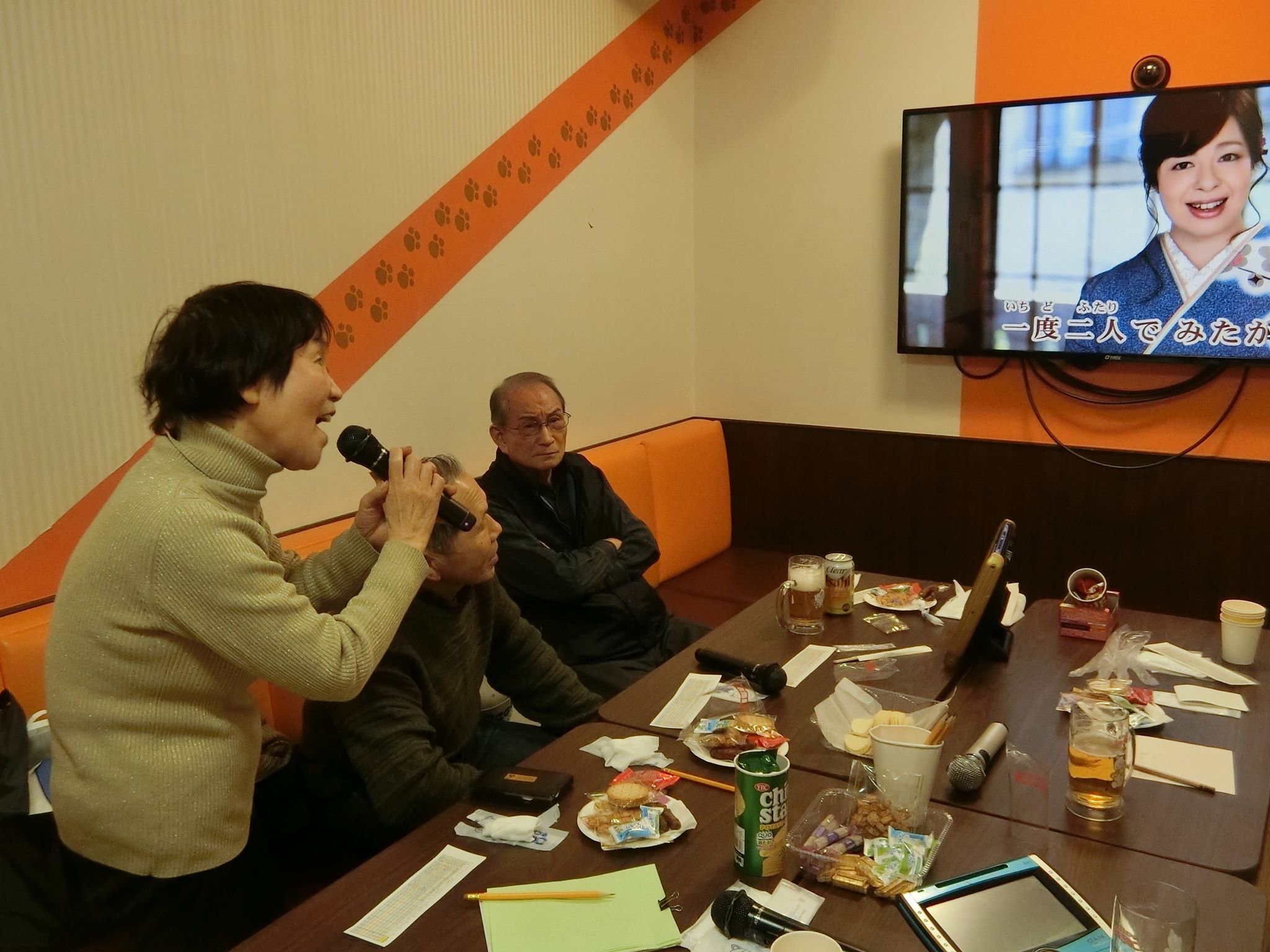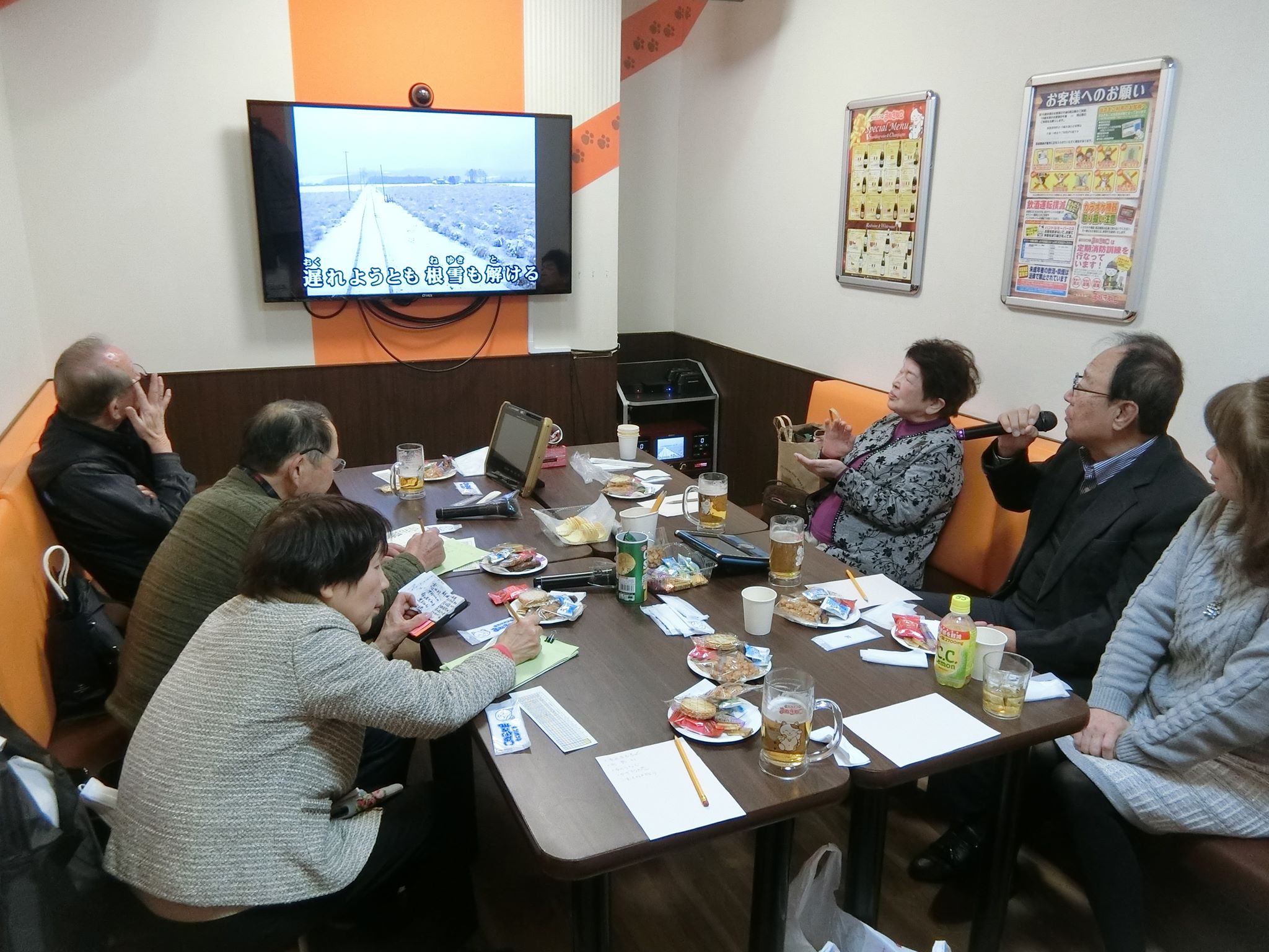 例年なら新年会を兼ねての開催となるカラオケ会、今年はいつも利用する真向いのお店が土日休業となり、他に適当なお店もなく、やむなく通常通りの開催となった。始まると確り4時間歌い続け、今回はカップル2組が歌うデュエット曲が目立った。仲睦まじく歌う様子は座を和ませ、微笑ましい限りだった。中締め後、更に歌い込む方を残し、解散となった。次回第33回は、5月10日(日)予定。